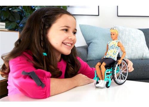 De Barbie Ken Fashionista in rolstoel is een stijlvolle toevoeging aan de Barbie-collectie. Ken heeft blond haar en maakt geen geluid. Dit product wordt geleverd door het merk Barbie, en heeft een EAN-code van 0887961949926.