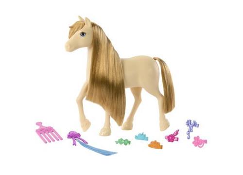 Dit Barbiespeelgoed, geïnspireerd op de Netflix-serie Barbie Mysteries: The Great Horse Chase, brengt de spanning van het racen naar het speelveld. Met Barbie's lieve pony Tornado kunnen kinderen vanaf 3 jaar hun fantasie de vrije loop laten en meeslepende avonturen beleven. Tornado heeft prachtige lange manen die gemakkelijk gestyled kunnen worden met een kam, een extension en zes schattige haarspeldjes.