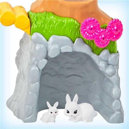 De speelset biedt een mooie wildernisomgeving met een boom, een brug van boomstammen, een grot en een kleurrijke regenboog in de lucht. Hier kunnen tien dieren, waaronder een vos, een babyhertje, 2 babyberen, een stinkdier, vogels, konijntjes en een eekhoorn, rusten en spelen. Kinderen kunnen hun creativiteit de vrije loop laten en allerlei avonturen bedenken in deze interactieve omgeving.