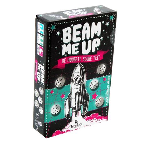 Beam Me Up is een vlot en eenvoudig te spelen dobbelspel waarbij je als doel hebt om als eerste 4 van jouw blokjes in de ruimte te krijgen. Maar let op, er mogen ook geen blokjes meer op de onderste rij liggen. Dobbel handige combinaties en win door strategisch te spelen en je tegenstanders te slim af te zijn. Met de actievelden op het bord en het verplicht laten dalen van de blokjes van je tegenstanders is er genoeg te doen.