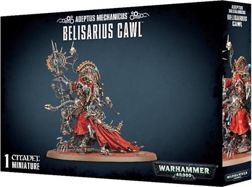 Deze meerdelige plastic set bevat de benodigde componenten om Belisarius Cawl, Prime Conduit of the Omnissiah, in elkaar te zetten. Met zijn Adeptus Mechanicus-broeders torent hij hoog boven hen uit, veel groter dan zelfs andere favoriete Tech-Priests van de Omnissiah, met ontelbare augmentaties die zijn nauwelijks menselijke gestalte verstoren. Hij draagt een Omnissian bijl, die dient als een handig montagepunt voor een reeks sensoren en zijn stemuitzendingsunit, en een boog gesel. Dit arcane energiewapen is bedekt met kabels, sensoren en extra aanhangsels. Dit thema van augmentatie gaat door in Cawls gewaden die niet helemaal zijn lichaam bedekken, maar een enorme hoeveelheid robotische extensies laten zien, met diverse extra benen, grijparmen en kabels die achter hem aanslepen. Een schrijfkop zweeft erboven, en er zijn verschillende symbolen van de Machine God verspreid over het miniatuur.