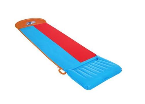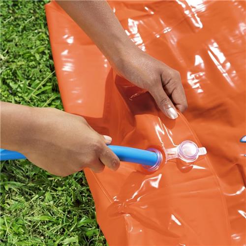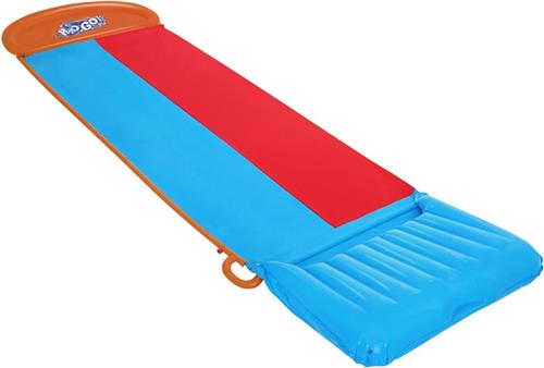 Deze Bestway H2OGO waterglijbaan Tsunami Splash Ramp Double Slide biedt een prachtige oplossing voor de zomerhitte! Tsunami Splash Ramp: deze tuinwaterbaan heeft een Tsunami Splash Ramp die watergolven van onder de helling duwt, die tot een ongelooflijk vlotte, snelle en natte rit leiden! Double Slide: deze opblaasbare waterglijbaan heeft 2 banen zodat je kinderen om beurten tegen hun vrienden kunnen racen. Gemakkelijk op te zetten en af te breken: de glijbaan kan snel en gemakkelijk worden opgezet en afgebroken. Hij houdt je kleintjes koel en creëert veel plezier. Je kunt een tuinslang bevestigen zodat sproeiers de glijbaan tijdens gebruik besprenkelen met water.