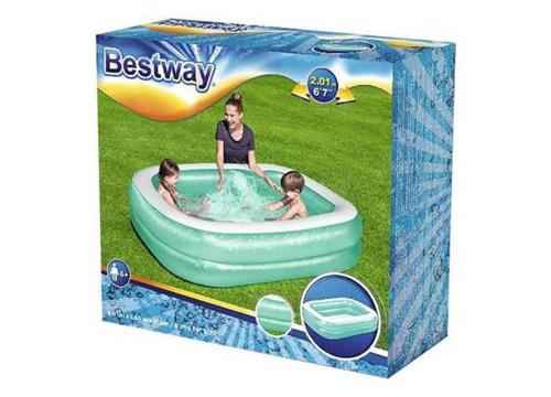Laat het plezier beginnen met het Bestway Vierkant Opblaasbaar Zwembad. Dit ruime familiebad biedt urenlang waterpret voor het hele gezin. Met een afmeting van 201x150x51 cm en een capaciteit van 450 liter, is dit zwembad perfect voor warme zomerdagen.