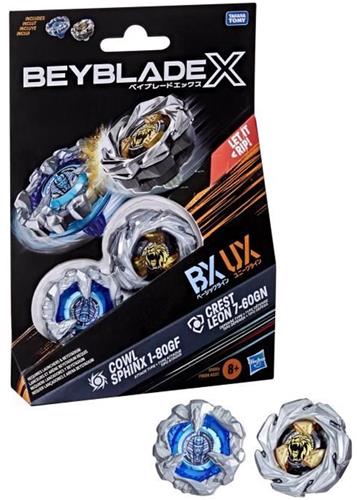 Controleer altijd voor aankoop de specificaties op de website van de webwinkel waar je Beyblade X Dual Pack Top Cowl Sphinx 1-80GF en Crest Leon 7-60GN - 8 jaar oud aankoopt