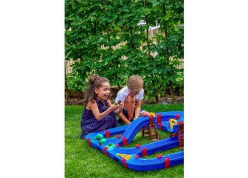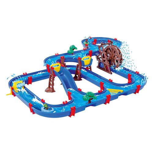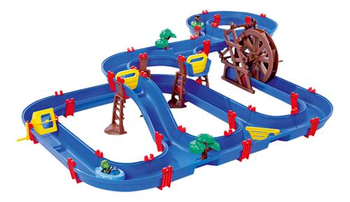 De AquaPlay Mega Water Wheel brengt verfrissing in de achtertuin. Het grote speelset bevat twee verdiepingen, waardoor er voor het eerst een waterbaan in de hoogte gebouwd kan worden. Het hoogtepunt van het speelset is het grote waterrad, dat zowel langzaam als supersnel gedraaid kan worden. Kinderen kunnen hiermee leuke waterspuit-feestjes houden. Met een draai aan het rad wordt water naar boven gepompt en in alle richtingen verspreid. Een waterval en een lange glijbaan zorgen voor een veelzijdige waterervaring. Daarnaast zijn er twee boten met dierenfiguren, 'Nils' de kikker en 'Bo' de beer, inbegrepen. Kinderen leren over water en zien hoe stromingen ontstaan en veranderen. Met de handige zwengel met grote bladen kunnen ze de stroming en richting bepalen. De waterwegen en liefdevolle details zorgen voor langdurig speelplezier.