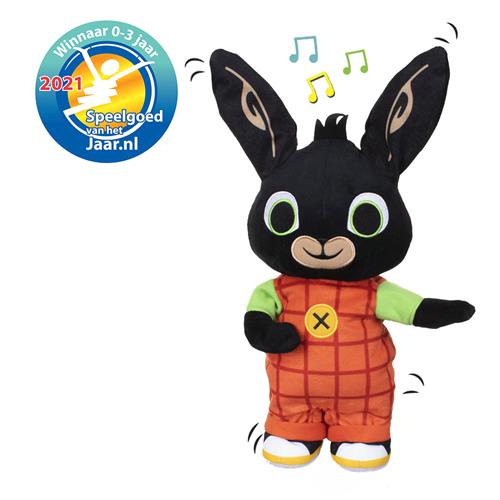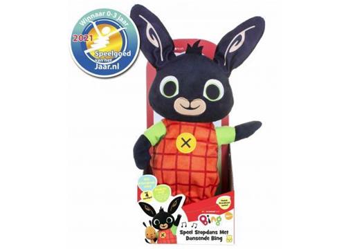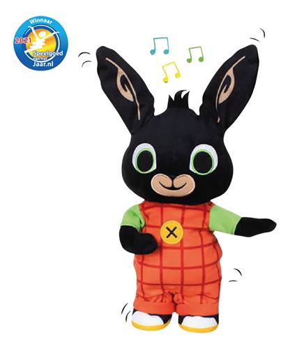 Productspecificaties: - Speel het spelletje Stopdans met Dansende Bing - Bing kan praten en dansen op de muziek - Zodra de muziek stopt, moet je standbeeld stil staan - Bing beweegt tijdens het dansen en ook zijn oren gaan heen en weer - Bing is gemaakt van zachte pluche