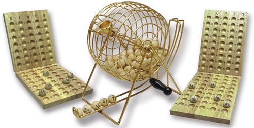 Specificaties: - Complete bingo molen - 1 Rubberhouten bingo controlebord voor 75 ballen - 75 houten bingoballen, 20 mm - Goudkleurig verchroomd metaal - Diameter korf 18 cm - Hoogte 24 cm