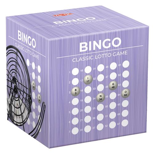 | Verpakkingsinhoud | - Bingomolen - Bingoballetjes 1-75 - 18 Bingokaarten - Aflegbord - Fiches - Spelregels |