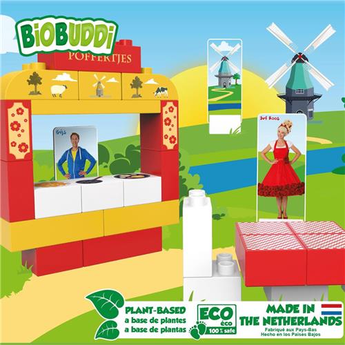Wat heeft jouw peuter of kleuter gisteravond gegeten? Kinderen bouwen nu zelf de fantasiewereld van Juf Roos met de Smakelijk eten-set van BiOBUDDi! Bouwen met blokken stimuleert niet alleen de motorische ontwikkeling van kinderen, maar ook de creatieve en cognitieve ontwikkeling. Deze set heeft daarnaast iets bijzonders. De set bevat niet alleen blokken om mee te bouwen, maar ook een kaart op de achterkant van de doos die als achtergrond gebruikt kan worden én uitdrukkaartjes van Juf Roos, buurjongen Gijs en andere figuren. Bijna de gehele verpakking kan dus gebruikt worden in de bouwwereld van kinderen om het speelplezier te vergroten! De blokken van BiOBUDDi zijn biobased en worden gemaakt van de resten van de suikerrietplant. De milieuvriendelijke blokken zijn recyclebaar, kindvriendelijk en sluiten aan bij de belevingswereld van kinderen. Deze set is ook te combineren met de andere sets van Juf Roos.