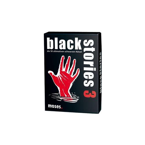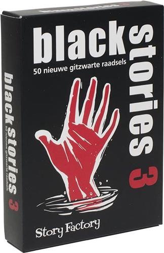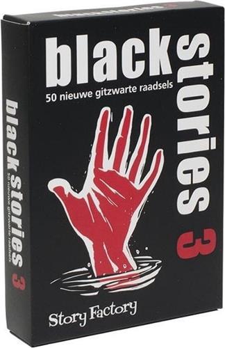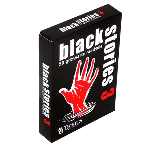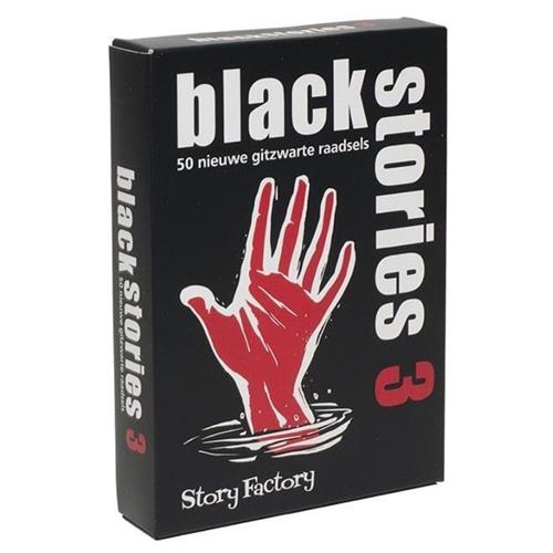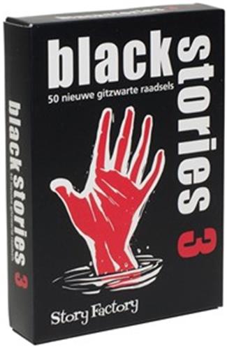 De spelers moeten door vragen te stellen de inktzwarte raadsels op de kaarten zien op te lossen. 50 nieuwe raadsels. Black stories 3 - weer bezorgen 50 gitzwarte raadsels je kippenvel. Zwarter, duisterder en meer sinister dan ooit tevoren! Het Raadselvolk krijgt een duister raadsel gepresenteerd door de Raadselmeester en moet vervolgens achter de oorzaak en alle details zien te komen door de Raadselmeester vragen te stellen die alleen met 'ja' of 'nee' beantwoord kunnen worden. Een heerlijk raadspel dat op geen enkel feest mag ontbreken en jou hopeloos in z'n ban krijgt! Ben je klaar voor nog meer angstzweet en wil je je stalen zenuwen op de proef stellen? Dan is black stories 3 precies wat je zoekt!