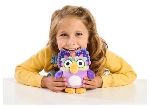 Bluey - Pluchen Chattermax is een knuffelspeeltje van het bekende personage Bluey, geschikt voor kinderen vanaf 3 jaar. Het speeltje is gemaakt van zacht pluche materiaal in de kleur paars. Met een hoogte van 18 cm is dit pluchen speelgoed perfect om overal mee naartoe te nemen. Het bevat geen geluidsfunctie en vereist geen app, betaalde diensten of Bluetooth-verbinding. Daarnaast is het niet interactief en kan het niet zelfstandig met internet verbinden. Bluey - Pluchen Chattermax is een officieel fan merchandise en draagt het CE-kwaliteitslabel.