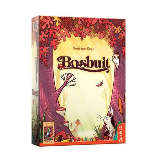 In Bosbuit bouw je met 16 kaarten een eigen bos van 4 bij 4. Iedere speler begint met 1 dierkaart. Elke ronde liggen er 4 kaarten open, 3 bospaden en 1 dier. Die zijn allemaal aan 1 van de adviseurs gekoppeld: de haan, het gordeldier, de geit en het konijn. Om beurten kiezen de spelers 1 kaart, die ze moeten aanleggen, waarbij ze ook de actie van de bijbehorende adviseur uitvoeren. Hun doel is om bospaden voor hun dieren te bouwen die naar het favoriete voedsel van die dieren leiden. Omdat elk dier zijn eigen voorkeuren heeft, is dat nog niet zo eenvoudig. Na 15 ronden is het spel afgelopen en telt iedereen het aantal punten dat hij voor zijn dieren krijgt. Wie de meeste punten heeft, wint Bosbuit!