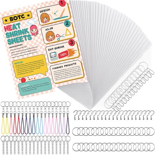 Met de BOTC Krimpfolie set - 70-Delig Inclusief Accessoires - Krimpie Dinkie Pakket kunnen kinderen vanaf 6 jaar prachtige sieraden en sleutelhangers maken. De set bevat 70 blanco krimpfolie vellen en 60 sleutelhanger accessoires, waardoor eindeloos creatief gebruik mogelijk is.