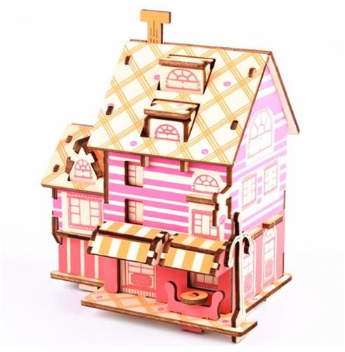 Met het houten bouwpakket Café Montmartre in kleur beleef je urenlang plezier terwijl je dit prachtige 3D-puzzelcafé in elkaar zet. Het bouwpakket is eenvoudig in elkaar te zetten door de onderdelen uit de voorgelaserde bouwplaten te drukken en in elkaar te klemmen. Hierdoor ontstaat een stevige constructie die je keer op keer kunt bewonderen.