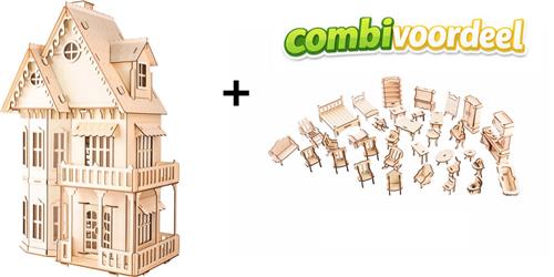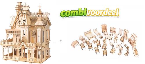Bouwpakket Poppenhuis Villa Fantasia groot DIY Schaal 1:24, incl. Poppenhuismeubels- hout