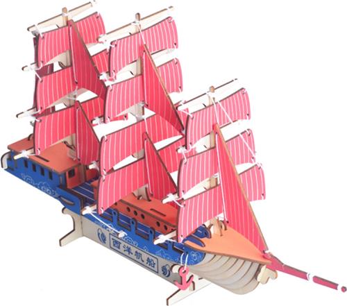 Met het houten bouwpakket van een zeilschip Driemaster in kleur van De Bouwplaats creëer je een prachtig model door de voorgelaserde bouwplaten in elkaar te drukken en te klemmen. Dankzij de lasercutting-technologie is geen lijm nodig, en met de stap-voor-stap-tekeningen is de montage een boeiende uitdaging. Dit pakket bevat 77 onderdelen en vereist een gemiddeld niveau van moeilijkheid. De afmetingen van het eindresultaat zijn 42,9 x 13,5 x 26,7 cm.