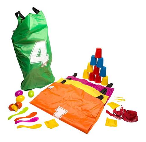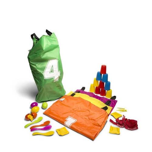 BS Toys Feestkit Spelset - Partijtje met Verschillende spellen - Zaklopen - Blikgooien - 4 Spelers - Buitenspeelgoed voor Kinderen - Vanaf 4 Jaar - Gezelschapspellen kinderen - Spelletjes voor kinderen - Buiten speelgoed - Buitenspel - Buiten Spellen