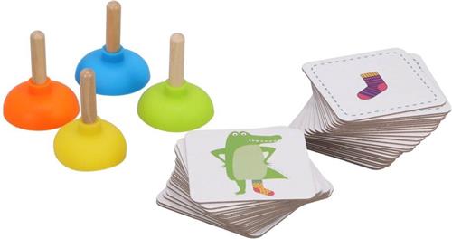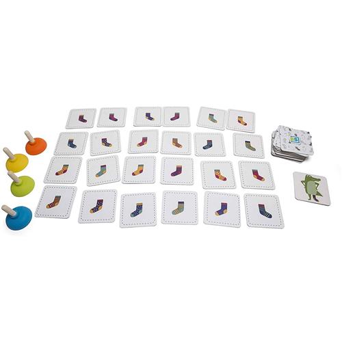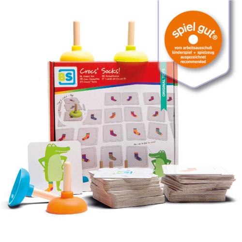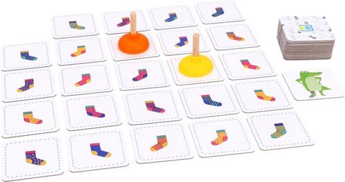 Mogen we je voorstellen aan het bekroonde BS Toys Kinderspel Crocs Socks! Dit spel, genomineerd voor Speelgoed van het Jaar 2019, is ideaal voor kinderen vanaf 4 jaar. De krokodil is een beetje van slag en zoekt wanhopig naar zijn sokken, maar hij kan geen gelijk paar vinden! Draai een kaart om en zoek als eerste naar de sok met de passende krokodillenplopper. Let goed op, want de krokodil heeft een linker- of rechtersok nodig.