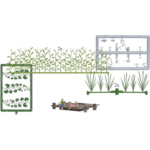 De set omvat twee actiefiguren van kinderen die vanaf een steiger de vissen observeren terwijl ze hun voer van het wateroppervlak halen. Inclusief een bootbrug van echt hout en prachtige waterplanten, zoals waterlelies en diverse grassen, creëert u een levendige omgeving. Ook kunt u zelf de kleine dieren beschilderen voor een verder gepersonaliseerde ervaring.