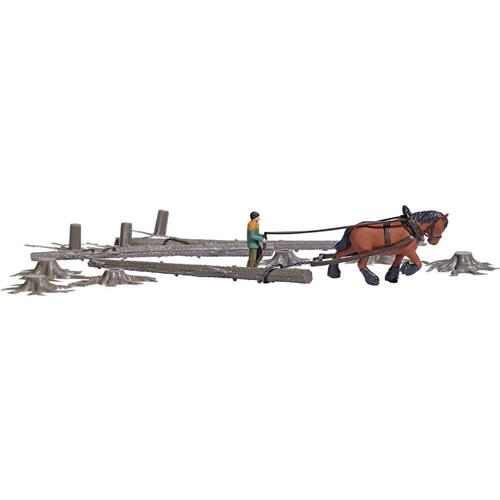Met deze set kunt u de transporttechnieken van vroeger nabootsen, waarbij paarden werden ingezet om bomen uit het bos te vervoeren. Dit is niet alleen een eerbetoon aan traditionele methoden, maar ook een duurzame benadering die de bosbodem beschermt. De set omvat een scala aan elementen, waaronder paardenkevers met koude bloesem, resteuitrusting, boomstammen, losse wortels en takken. Perfect voor de tijdperken 5 en 6 in uw modelspoor.