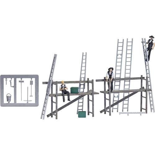 In deze set vindt u drie deskundige kamermannen die met hun gereedschap, waaronder zagen en hamers, hun vakmanschap tonen. Tevens zijn er twee houten masten en verschillende ladders inbegrepen, waardoor u de mogelijkheid heeft om een levendige en dynamische bouwplaats te creëren. Deze kameraden zijn een must-have voor elke hobbyist die zich bezighoudt met modelbouwen.