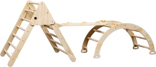 Buxibo Opvouwbare Driehoek + Klimboog + Helling met Klimrek/Glijbaan - Montessori Meubels Houten Speelgym - Naturel