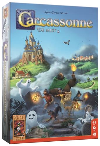 De mist kruipt over de akkers, slokt hele boerderijen op en bereikt de stadsmuren. Zelfs de moedigste ridders huiveren en hun uitrustingen ratelen als ze de verhalen van de nonnen horen: “De mist wekt de onrustige zielen van de katharen, waar tijdens de kruistochten op werd gejaagd. En zij komen nu gerechtigheid halen!” Om de rust in Carcassonne te herstellen, moeten de spelers samen werken om de dolende geesten weer tot rust te brengen. Carcassonne: De Mist is de eerste versie van Carcassonne die coöperatief kan worden gespeeld. Door samen te werken moeten er genoeg punten worden verzameld. Je verliest als groep als alle tegels op zijn òf als er teveel geesten op het speelveld zijn beland. Met elke nieuwe tegel waar mist op te zien is, komen nieuwe geesten in het spel. Alleen door een mistveld met tegels volledig af te sluiten kunnen de geesten tot rust worden gebracht. Maar pas op! Het aantal tegels is beperkt en er moet een minimum aantal punten worden behaald. Carcassonne: De Mist heeft 6 verschillende niveaus, waarbij met elk niveau nieuwe, uitdagende spelelementen worden geïntroduceerd. Daarnaast bevat het spel de regels voor de variant “Geesten, Kastelen en Kerkhoven”. Door middel van deze regels kan Carcassonne: De Mist worden gebruikt als een normale uitbreiding op het basisspel. Volop variatie dus voor zowel Carcassonne-fans als nieuwe spelers!