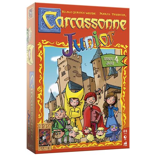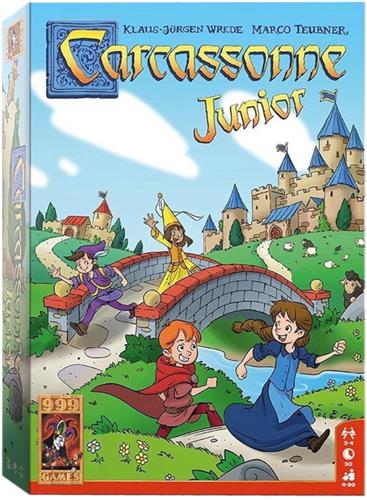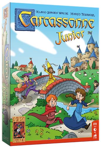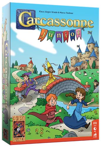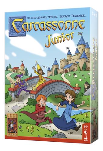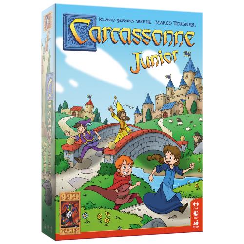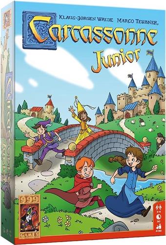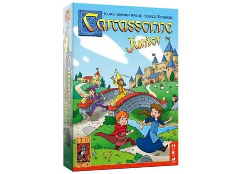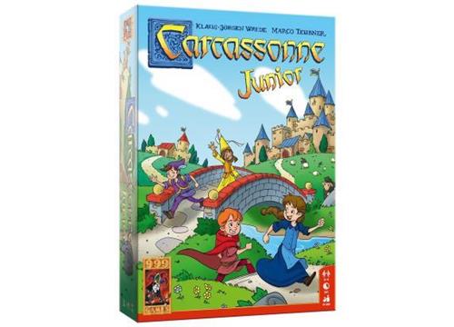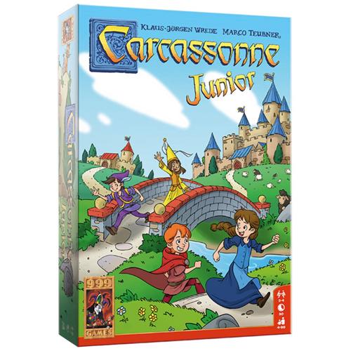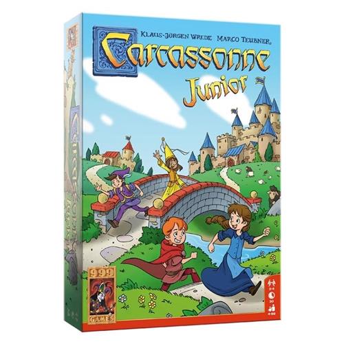 Carcassonne Junior is de vereenvoudigde versie van het bekende basisspel Carcassonne en is al geschikt voor kinderen vanaf vier jaar. Je krijgt acht houten speelstukken, de zogenaamde kinderen van Carcassonne. Deze Junior versie bevat 36 grote en stevige landschapstegels. Daarop staan stukken van een weg, vijvers, stadsdelen en huizen. Op bijna elke tegel staan bovendien één of twee kinderen in de kleuren rood, groen, geel of blauw getekend. Deze kinderen spelen een belangrijke rol. Eén tegel wordt omgedraaid en geldt als starttegel.