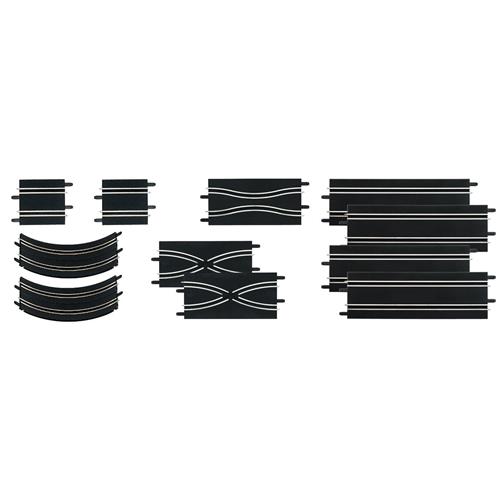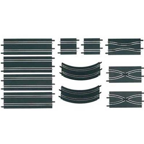 | Verpakkingsinhoud | bevat vier lange rechte stukken, twee korte rechte stukken, twee fly-overs, twee spoorwissels en een wegversmalling |