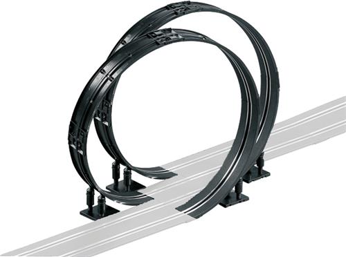 De Carrera GO!!! Loopings set bevat twee complete loopings, één voor elke weghelft. Elke looping bestaat uit vier loopingdelen en wordt geleverd met verstelbare steunen. Deze set is geschikt voor zowel Go als Digital 143 racebanen, waardoor je eindeloos kunt variëren en uitdagende races kunt creëren voor urenlang speelplezier.