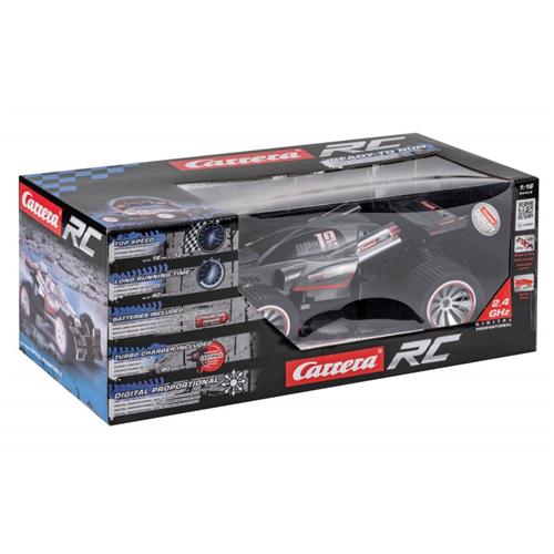 De Carrera RC Speed Phantom 2 is een stoere bestuurbare raceauto die zowel binnen als buiten te gebruiken is. Met een maximale snelheid van 20 km/u heb jij de controle en de kracht om al je tegenstanders te verslaan en als winnaar over de finish te komen. Met een schaal van 1:16 is deze auto compact en wendbaar, waardoor je soepel door bochten kunt racen en vol gas kunt geven op rechte stukken.