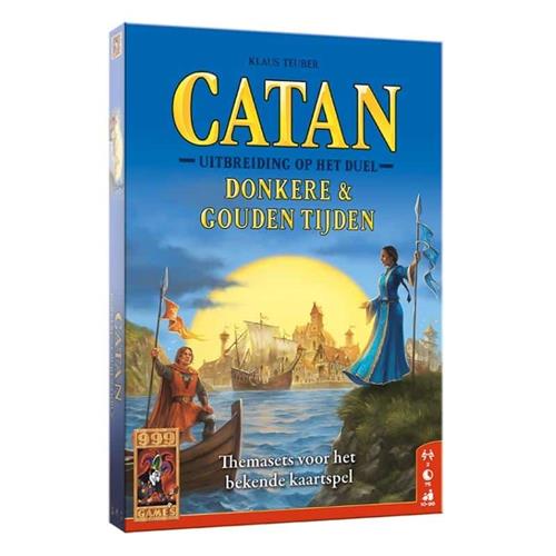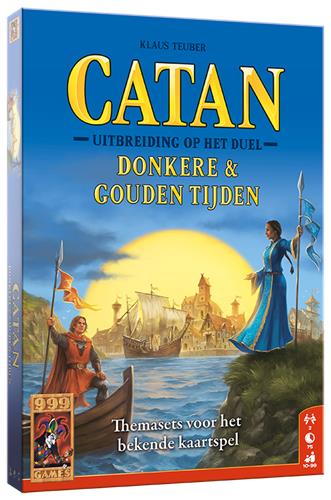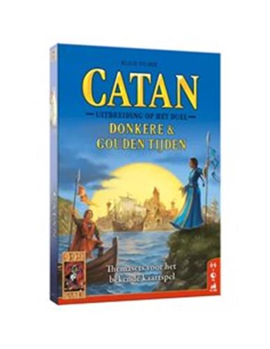 De Donkere en Gouden Tijden van Catan zijn gekomen! Nieuwe mogelijkheden en avonturen wachten op je. Verken de zee op zoek naar nieuwe gebieden, neem het op tegen invasies van barbaren en til je steden naar een hoger plan door middel van wijsheid en tevredenheidspunten. Deze uitbreiding op de populaire Catan-variant voor 2 spelers komt met 6 nieuwe themasets, met elk nieuwe eenheden, ontwikkelings- en uitbouwkaarten en nieuwe spelregels. Dankzij de meer dan 200 kaarten wordt de wereld van Catan: het Duel flink uitgebreid en kan er volop worden gevarieerd. Catan het Duel: Donkere & Gouden Tijden is een heruitgave van de uitbreidingen De Vorsten van Catan - Donkere Tijden en De Vorsten van Catan - Gouden Tijden. De spelregels zijn niet gewijzigd, zodat het combineren van het basisspel De Vorsten van Catan met deze uitbreiding zonder problemen mogelijk is.