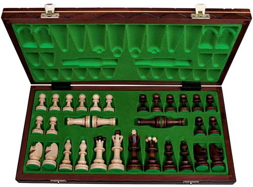 Met afmetingen van 54 x 54 cm biedt dit schaakspel voldoende speelruimte. De schaakstukken zijn gemakkelijk op te bergen aan de binnenzijde van het lichtgewicht schaakbord, dat twee compartimenten heeft met een vilten voering om beschadiging te voorkomen. Bovendien zijn de schaakstukken voorzien van groen vilt aan de onderkant.