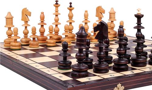 Het grote formaat van het schaakspel geeft een luxe uitstraling en maakt het ideaal als decoratief display. De schaakstukken zijn voorzien van een lichte verzwaarding voor balans en hebben groen vilt aan de onderkant voor een zacht gevoel op het bord. Met een koningshoogte van 14 cm is dit schaakspel zowel geschikt voor kinderen als volwassenen.