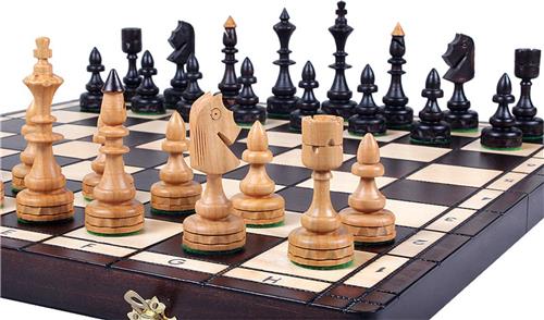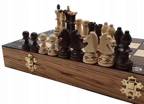 Dit schaakset is dankzij een klassiek ontwerp van de stukken een van de meest populaire van decoratieve houten schaaksets. Het schaakset heeft een prachtig klassiek ontwerp in combinatie met unieke patronen die decennia lang geweldig schaakspel zullen bieden. Het inklapbare schaakbord heeft twee compartimenten afgewerkt met een vilten voering voor het opbergen van de schaakstukken binnenin. De schaakstukken van mooi kersen hout zijn van een uniek ontwerp. Decoratieve metalen scharniertjes houden het bord veilig vergrendeld na het spelen. Het schaakspel heeft in de binnenkant ruimte om de stukken in op te bergen, waardoor je de stukken minder snel kwijt raakt.