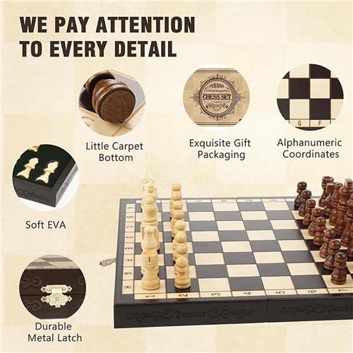 Ons schaakspel is gemaakt van hoogwaardig grenenhout, met een glad oppervlak en keurig gesneden, zonder scherpe randen. De handgesneden schaakstukken brengen het spel tot leven en zorgen voor een plezierige speelervaring. Let op: het schaakbord is niet magnetisch.