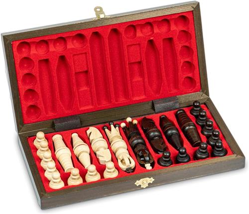 Wees milieuvriendelijk met dit stevige en solide houten schaakbord als ecologisch alternatief voor andere plastic spellen. Uitstekende kwaliteit dankzij handmatig werk in Europa met oog voor detail, zelfs de schaakstukken zijn met de hand gesneden. Het bord is opvouwbaar en dient als een schaakdoos voor het opbergen van de stukken.