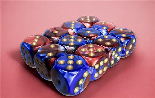 Chessex 12 x D6 Set Gemini 16mm - Blue-Red/Gold