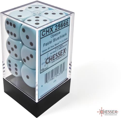 - Bij Spelhuis kun je Chessex 12 x D6 Set Opaque Pastel 16mm - Blue/Black kopen voor de prijs van € 6,99. Dit is vandaag de goedkoopste webshop.