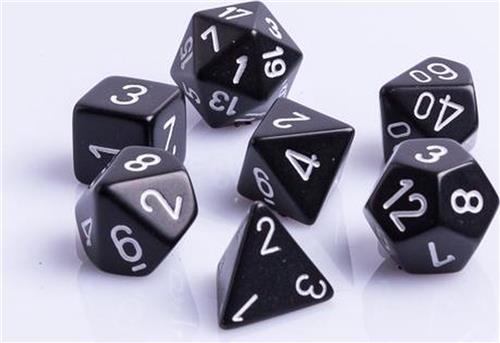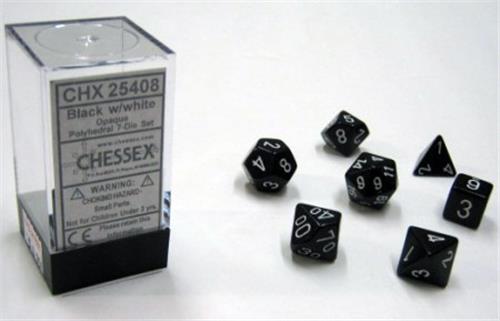 - Bij Spelhuis kun je Chessex dobbelstenen set, 7 polydice, Opaque Black w/white kopen voor de prijs van € 6,99. Dit is vandaag de goedkoopste webshop.