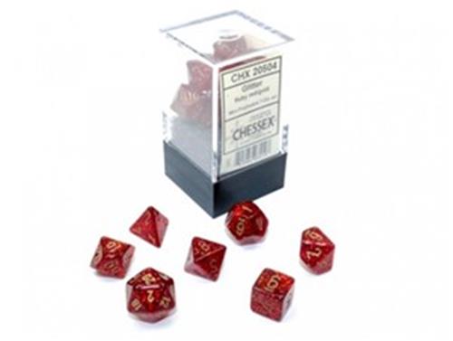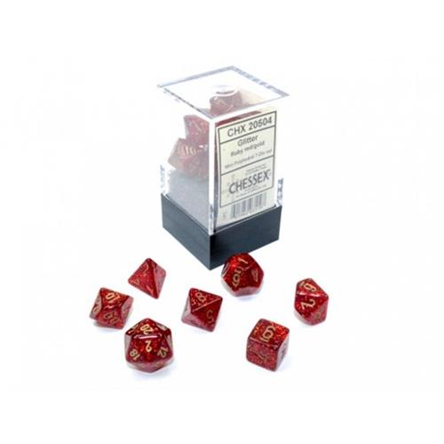- Bij Spellenrijk kun je Chessex Glitter Mini-Polyhedral Ruby/gold Dobbelsteen Set (7 stuks) kopen voor de prijs van € 6,95. Dit is vandaag de goedkoopste webshop.