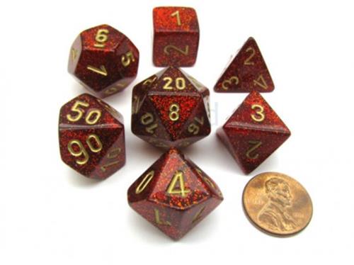 - Bij Spelhuis kun je Chessex Glitter Ruby/gold Polydice Dobbelsteen Set (7 stuks) kopen voor de prijs van € 12,99. Dit is vandaag de goedkoopste webshop.