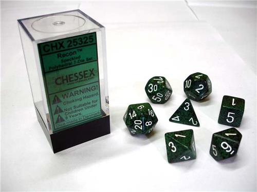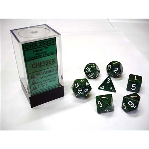 - Bij Spelhuis kun je Chessex Recon Speckled Polydice Dobbelsteen Set (7 stuks) kopen voor de prijs van € 6,99. Dit is vandaag de goedkoopste webshop.