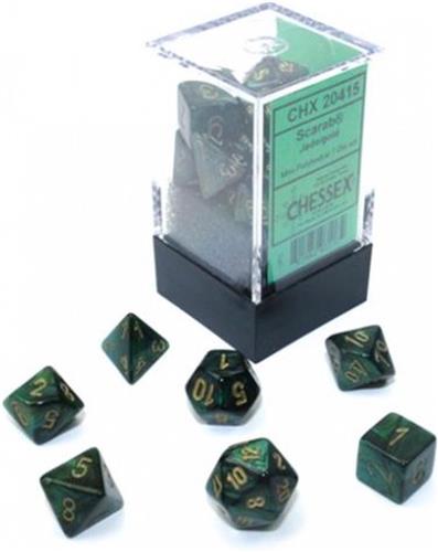 - Bij Spellenrijk kun je Chessex Scarab Mini-Polyhedral Jade/gold Dobbelsteen Set (7 stuks) kopen voor de prijs van € 6,95. Dit is vandaag de goedkoopste webshop.