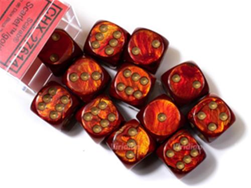 - Bij Spellenrijk kun je Chessex Scarab Scarlet/gold D6 16mm Dobbelsteen Set (12 stuks) kopen voor de prijs van € 11,95. Dit is vandaag de goedkoopste webshop.