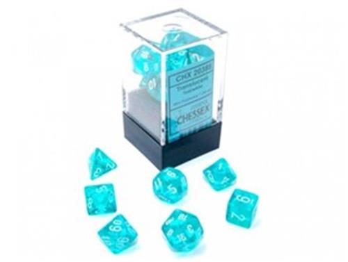 Chessex Translucent Mini-Polyhedral Teal/white Dobbelsteen Set (7 stuks)