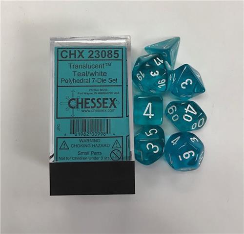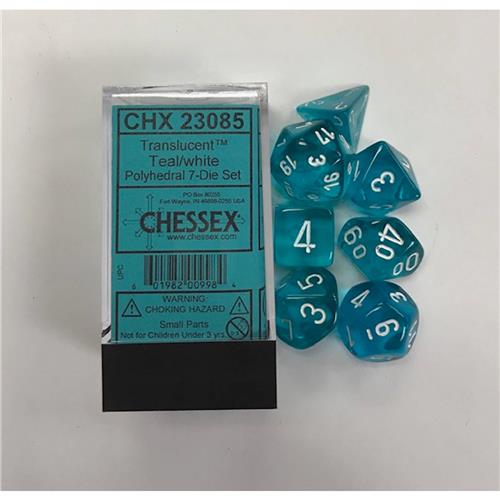 - Bij Spelhuis kun je Chessex Translucent Teal/white Polydice Dobbelsteen Set (7 stuks) kopen voor de prijs van € 11,99. Dit is vandaag de goedkoopste webshop.