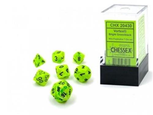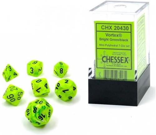 - Bij Spellenrijk kun je Chessex Vortex Mini-Polyhedral Bright Green/black Dobbelsteen Set (7 stuks) kopen voor de prijs van € 6,95. Dit is vandaag de goedkoopste webshop.