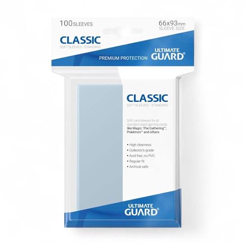 De Classic Soft Sleeves Standard Size Transparent (100) zijn afkomstig van het merk Ultimate Guard en voldoen aan de hoogste kwaliteitsnormen. Met een EAN van 4260250071014 zijn ze eenvoudig te identificeren en passen ze perfect bij andere producten van het merk. Of je nu actief bent in ruilkaarten of je gewoon jouw kaarten veilig wilt bewaren, deze soft sleeves bieden de bescherming en kwaliteit die je nodig hebt.