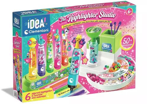 Een unieke en creatieve studio voor het maken van superleuke markeerstiften. De Clementoni Highlighter Laboratorium set is perfect voor kinderen die graag hun eigen markeerstiften willen maken en personaliseren. Met deze praktische set, vol met filters, punten, inkt, personages en alle benodigdheden, kunnen kinderen hun creativiteit de vrije loop laten.